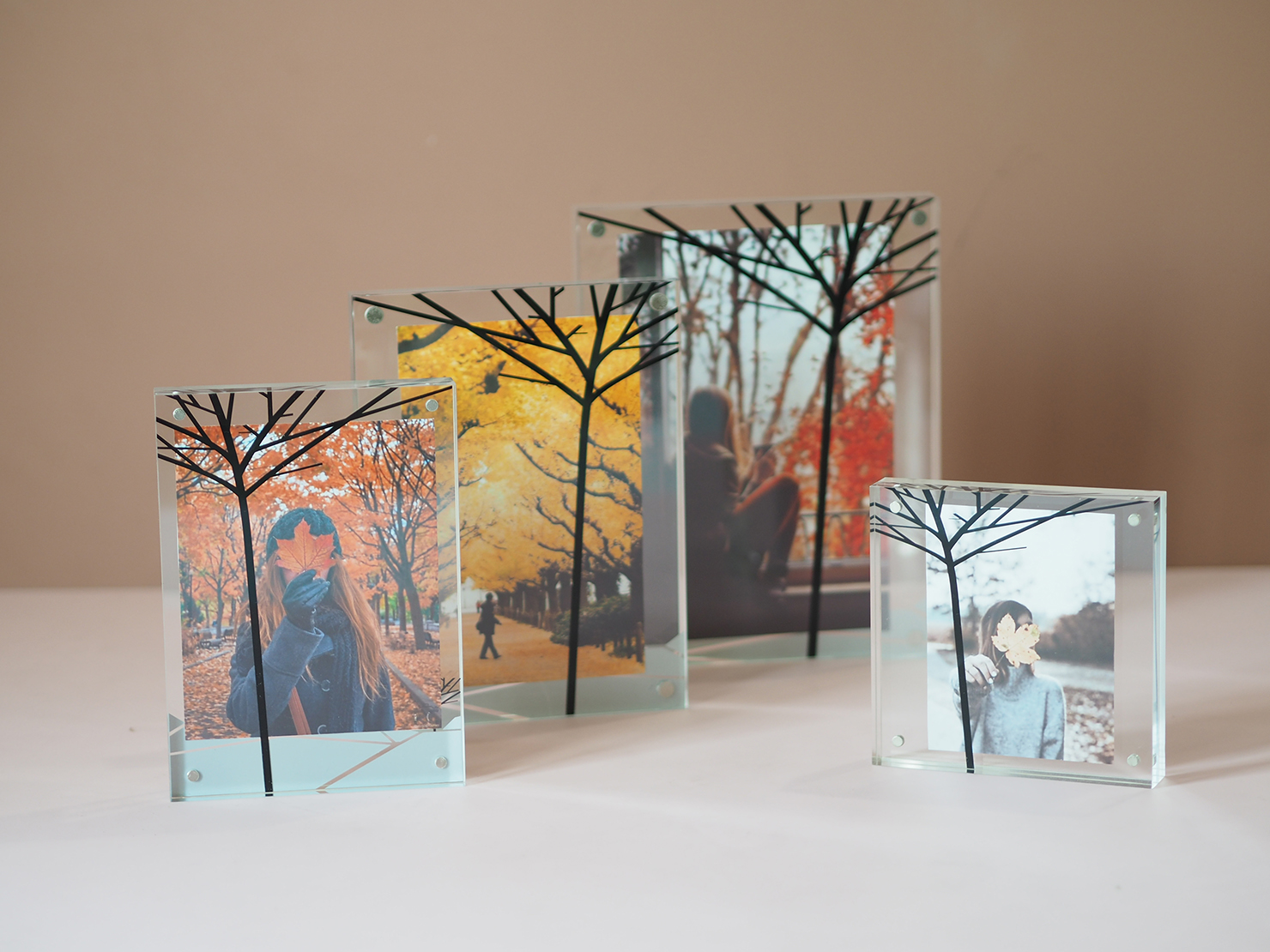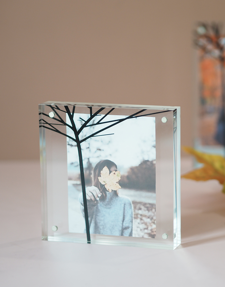 Magnetic photo frame tree printing on clear acrylic.